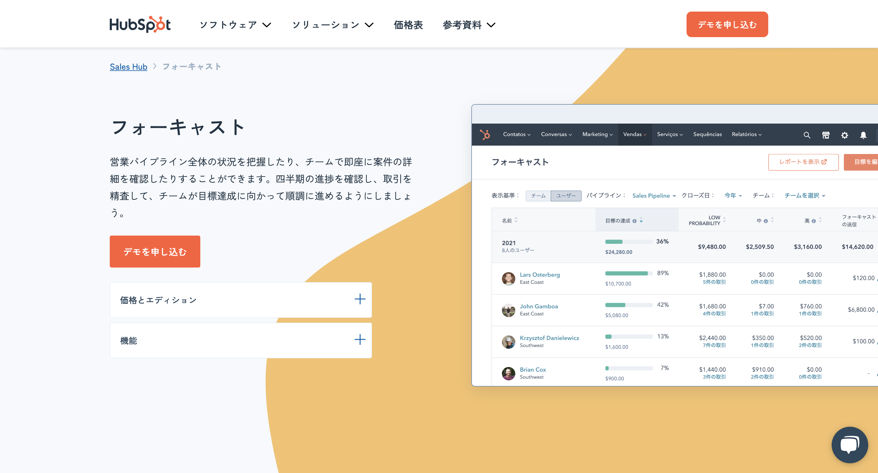 HubSpotのフォーキャストツールは、営業担当者が自身の進捗をリアルタイムで確認し、目標達成に向けて最適な行動を取るためのサポートを提供します。これにより、チーム全体の営業パフォーマンスが向上する効果が期待されます。